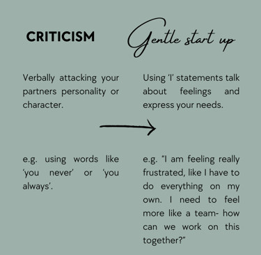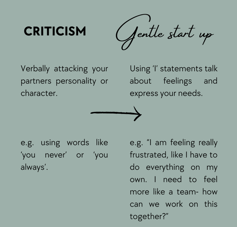 When you do start to see the horseman appear in your relationship it’s important to remember that your relationship isn’t doomed, it’s just time to pivot how you manage conflict. Here are my top tips to help to manage conflict better.