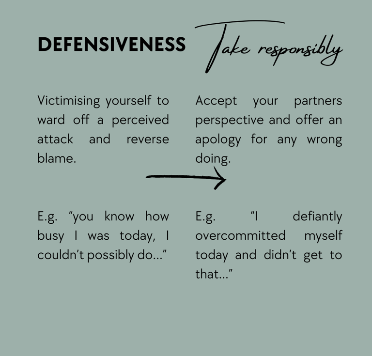 Defensiveness ->take responsibility
