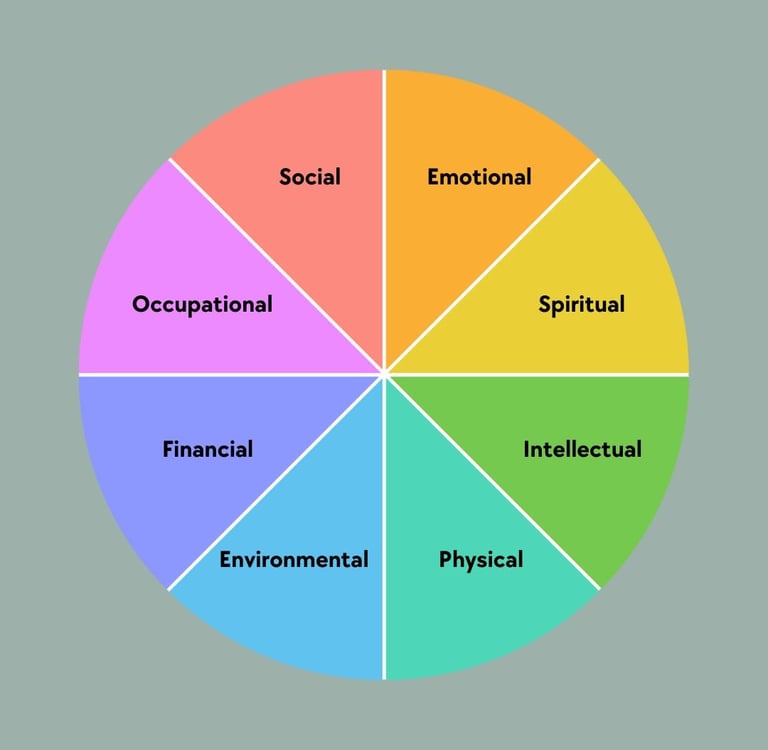 This relates to your overall sense of purpose and meaning in the world. Whether you have a faith of not, you can still find meaning and purpose in the world around you. Investing in your spiritual health can help you make meaning out of this crazy ride called life, add a deeper sense of connection to the world and people around you and assist in building a calmer, more balanced life.